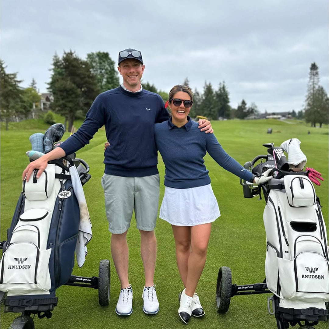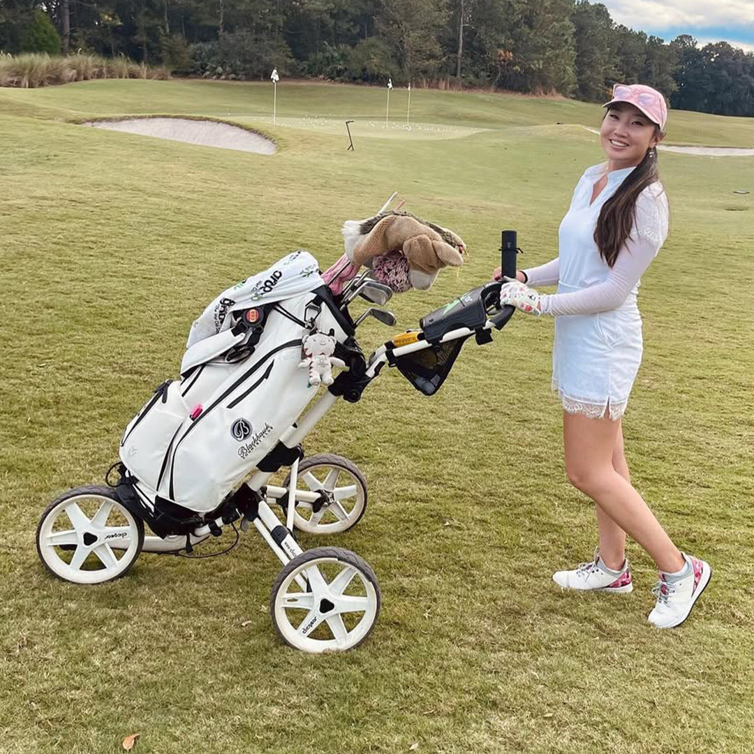 If you don't have a full time caddy, then the absolute best option is a Clicgear push cart.
